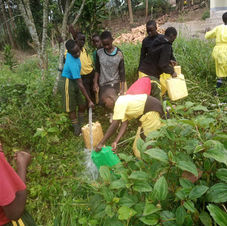 Water is a constant need. In the past, the children would walk and look for water often from muddy water holes or water would need to be purchased. When building the orphanage, we decided to do a metal roof in order to harvest rain water. The water runs into the gutter system and then into a storage tank. After that, it is purified by water filtration devices. Also, a well was dug on the site and a generator purchased so that the pump can run even if the electricity isn't functioning as is often the case in this area. Shortly after the well was operating, a group of school children from another village were walking looking for water, when they came upon this site. They enjoyed filling their jugs with fresh, clean water. We are so grateful for the people who donated to this project!